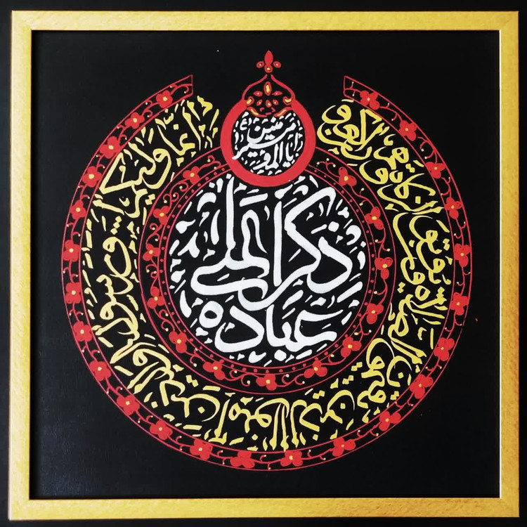 تابلو خوشنویسی کالیگرافی نقاشیخط ذکر علی عباده کپی